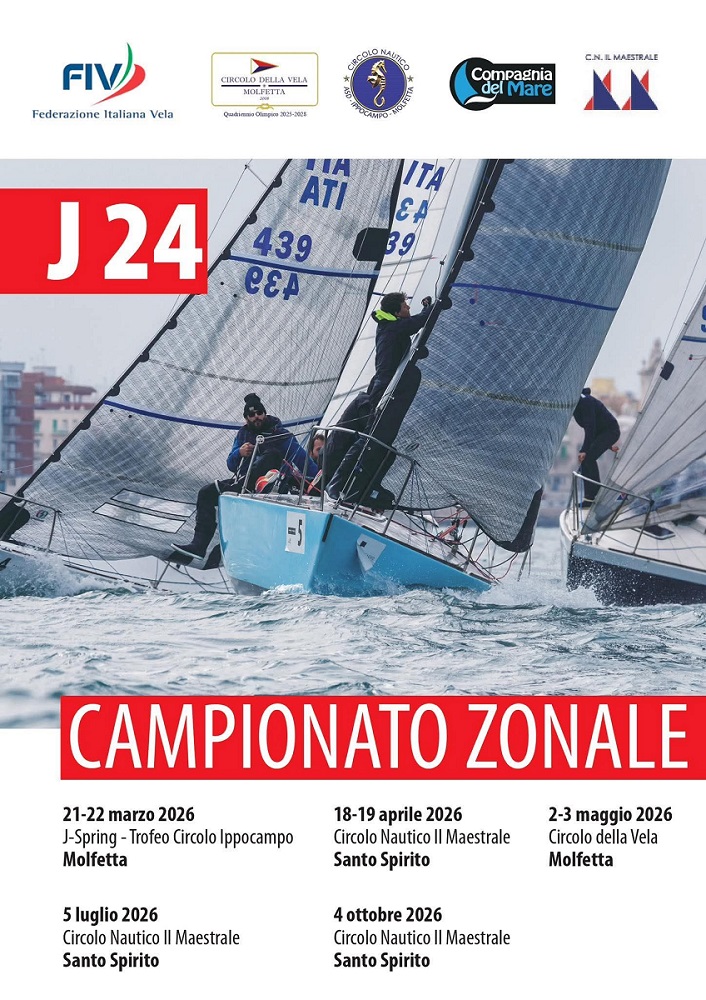 Torna indietro Campionato Zonale J24 Sei qui: Home / Regate / Campionato Zonale J24 Date: dal 04/10/2026 al 04/10/2026 Circolo organizzatore: Circolo Nautico Il Maestrale Classi coinvolte: J24 Circoli in collaborazione: Localitą: Bari Mare: Adriatico Nomine U.D.R. Comunicati C.O. Comunicati C.d.R. Comunicati C.d.P. Condividi con