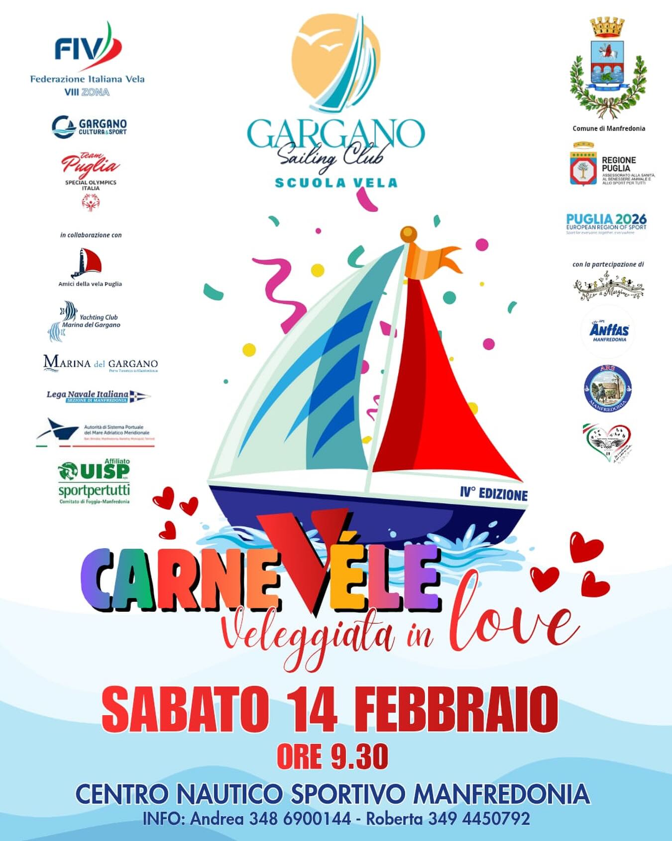 Torna indietro IV Edizione Carnevele in Love Sei qui: Home / Regate / IV Edizione Carnevele in Love Date: dal 14/02/2026 al 14/02/2026 Circolo organizzatore: Gargano Sailing Club SSD Classi coinvolte: Derive Tutte Circoli in collaborazione: Localitą: Manfredonia Mare: Adriatico Nomine U.D.R. Comunicati C.O. Comunicati C.d.R. Comunicati C.d.P. Condividi con